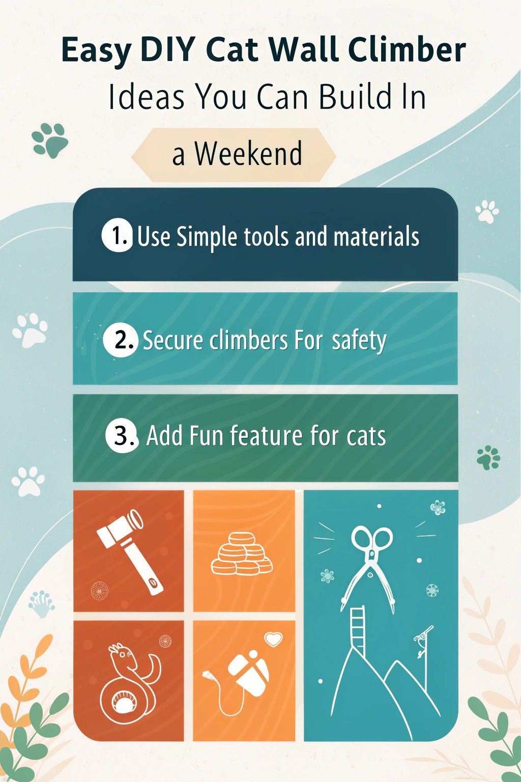 - You can build a cat wall climber with simple tools and materials like wood, screws, brackets, and fabric.